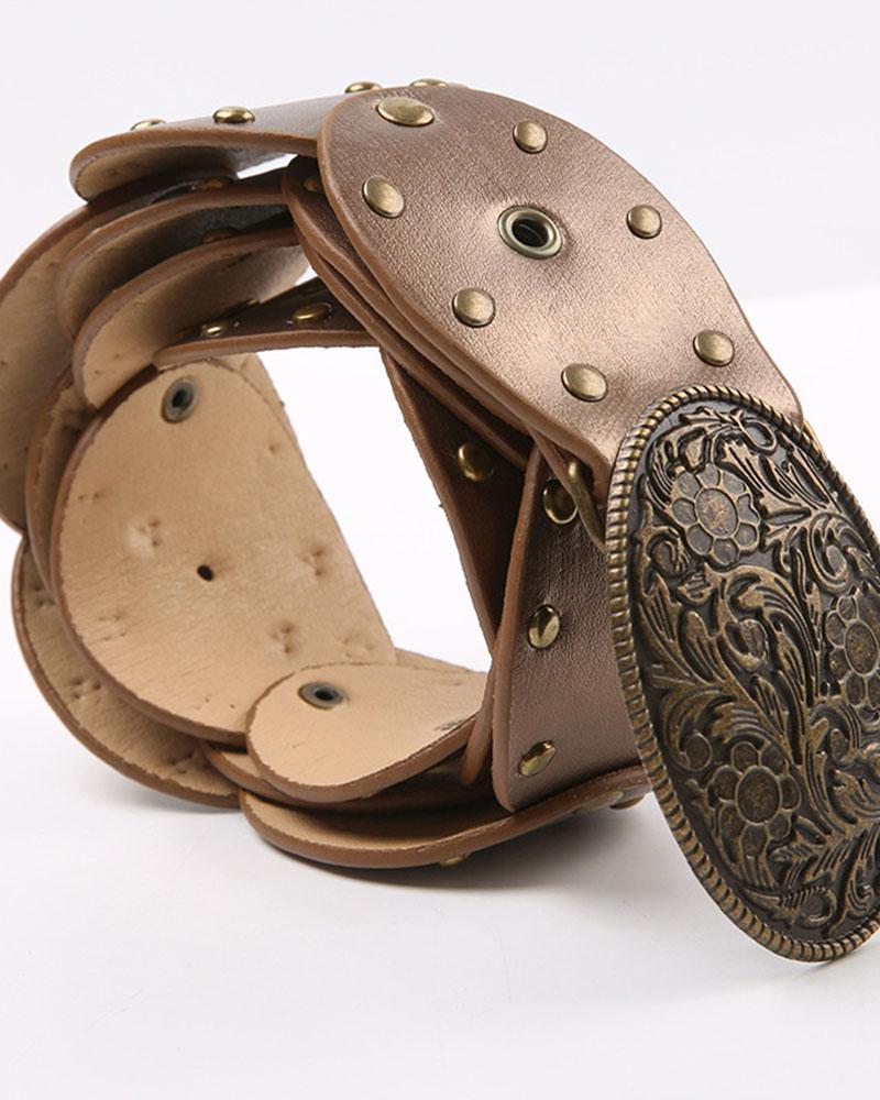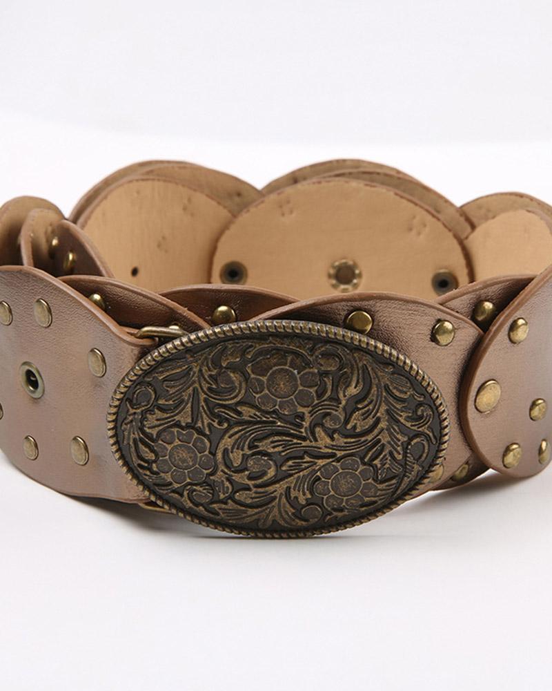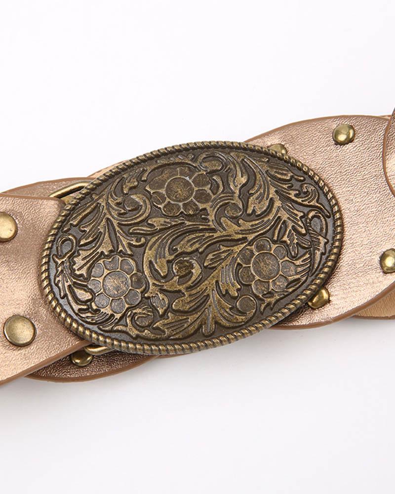 Details: Belt with front metallic design
